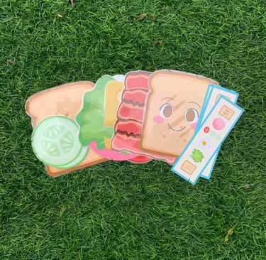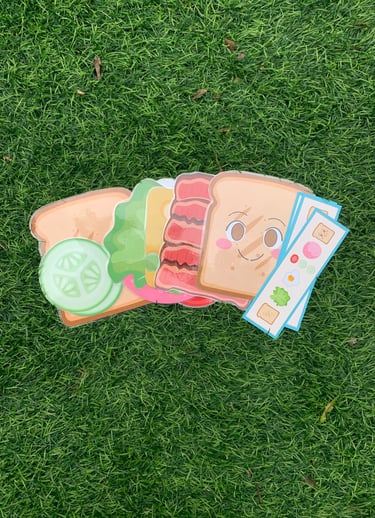 Di pagi hari, sambil menyiapkan sarapan, orang tua bisa mengajak anak bermain menyusun sandwich mainan, menyebutkan bahan-bahan dan warnanya.