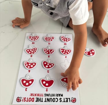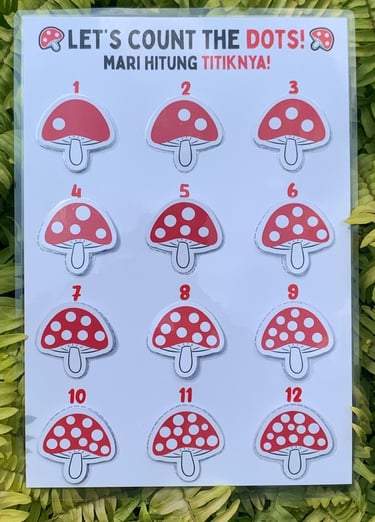 Anak bisa menyusun kancing di sekitar jamur, membuat “hutan warna-warni” sambil belajar menghitung.