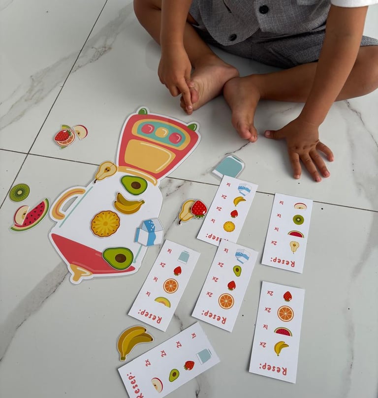Tambahkan potongan pompom atau kancing kecil sebagai “buah tambahan” dalam permainan jus.