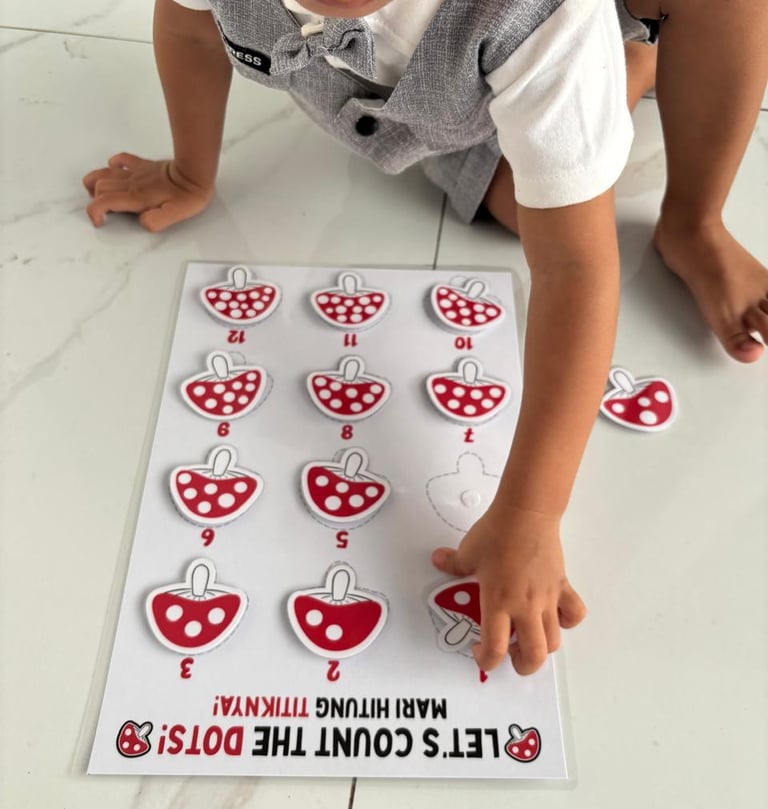 Kegiatan ini bisa dilakukan sambil berdialog: “Warna apa yang kamu pilih untuk bunganya?” atau “Coba hitung pompom birunya, ada berapa?” — percakapan ringan seperti ini justru memperkaya kemampuan bahasa dan interaksi sosial anak.