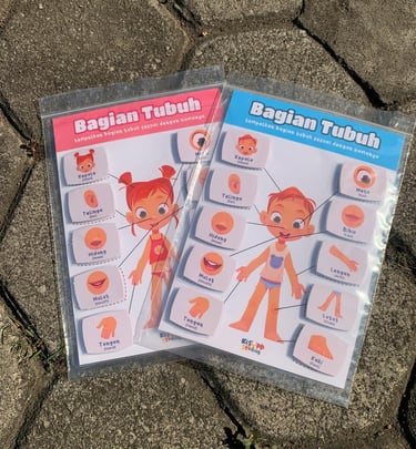 Aktivitas menempel dan mencocokkan bagian tubuh bukan hanya permainan sensorik, tapi juga melatih koneksi antara bahasa dan visual.