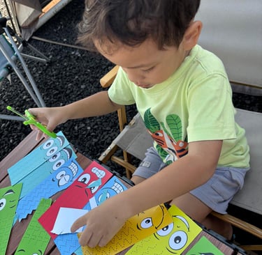 Kegiatan sederhana ini membantu anak mengasah kontrol tangan dan ketepatan gerak, dua hal penting untuk kesiapan menulis.